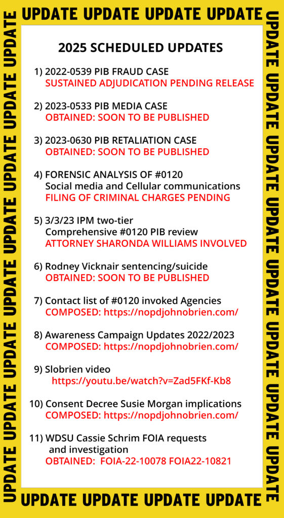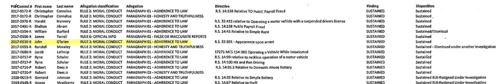 This CURRENT Investigation represents at least the fourth known NEW ORLEANS POLICE DEPARTMENT INTERNAL AFFAIRS INVESTIGATION of Lieutenant John O’Brien since 2017.